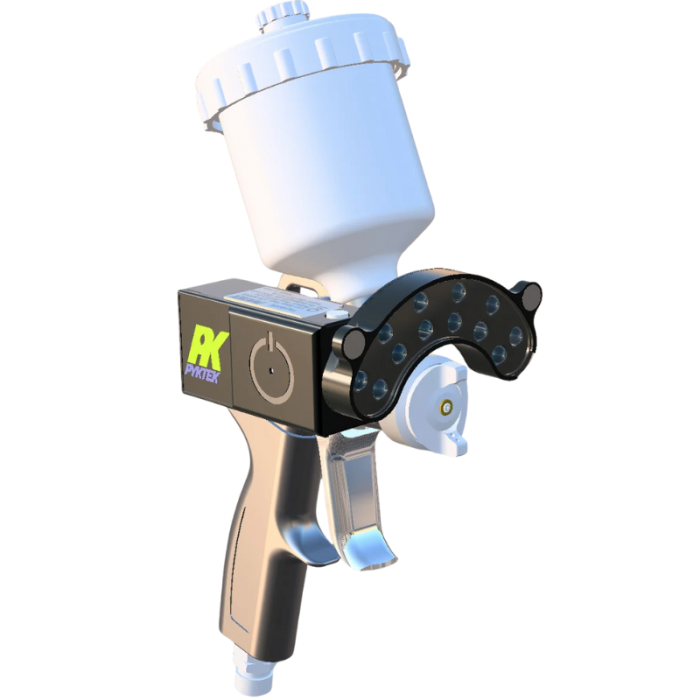 Acest accesoriu pentru pistolul de vopsit dispune de 12 LED-uri, îmbunătățind iluminarea și vizibilitatea în timpul vopsirii.