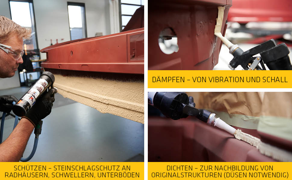 Unde este aplicat, SIKAFLEX 529 Evolution Polymer îmbunătățește rezistența împotriva așchiilor de pietriș și a altor atacuri asupra caroseriei mașinii.
